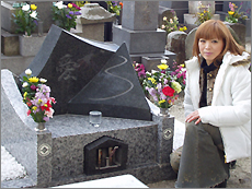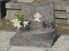 広い墓地に小さくかわいらしいお墓がひとつ、