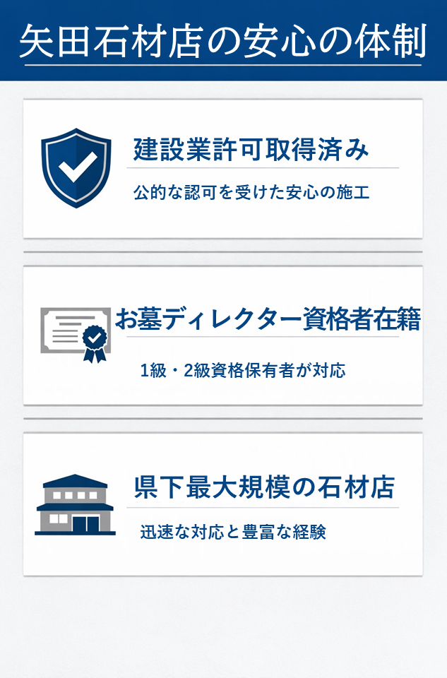 矢田石材店は、以下のような体制でお客様をサポートしています。